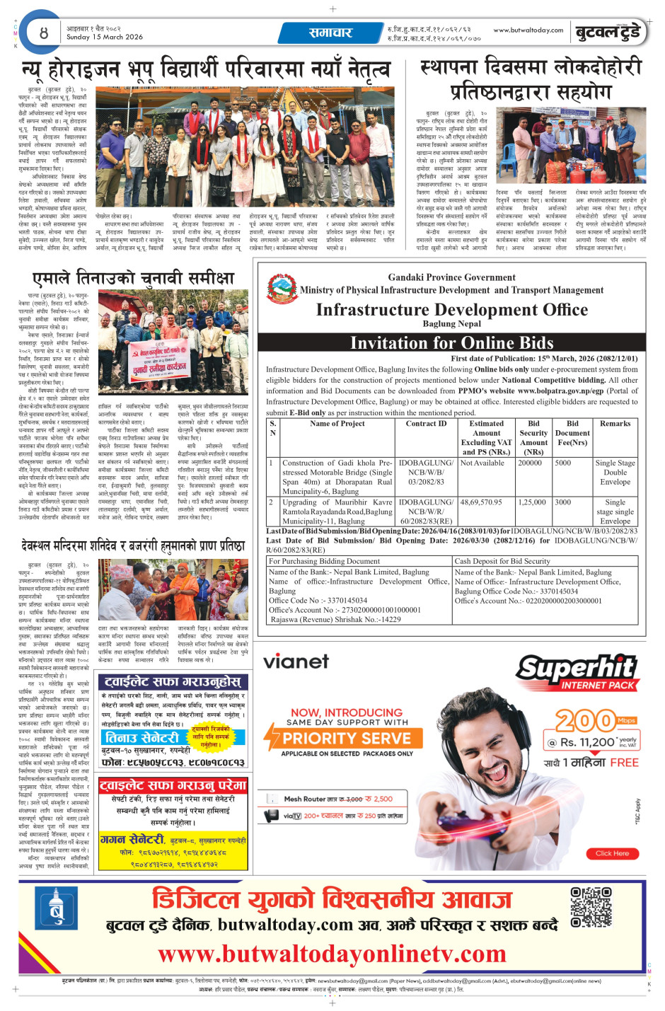 © सर्वाधिकार सुरक्षित पूर्वाधार विकास कार्यालय, बाग्लुङ्ग
